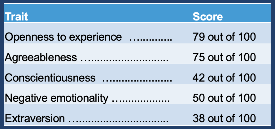 On a scale of 0 to 100, how introverted/extraverted are you? Have you ever taken a personality test like Big Five Personality Traits?