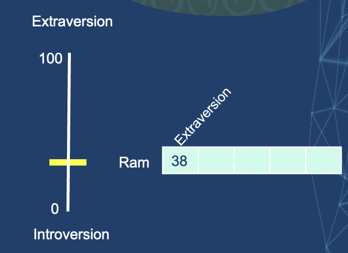 Imagine I’ve scored 38/100 as my introversion/ extraversion score. We can plot that in this way.